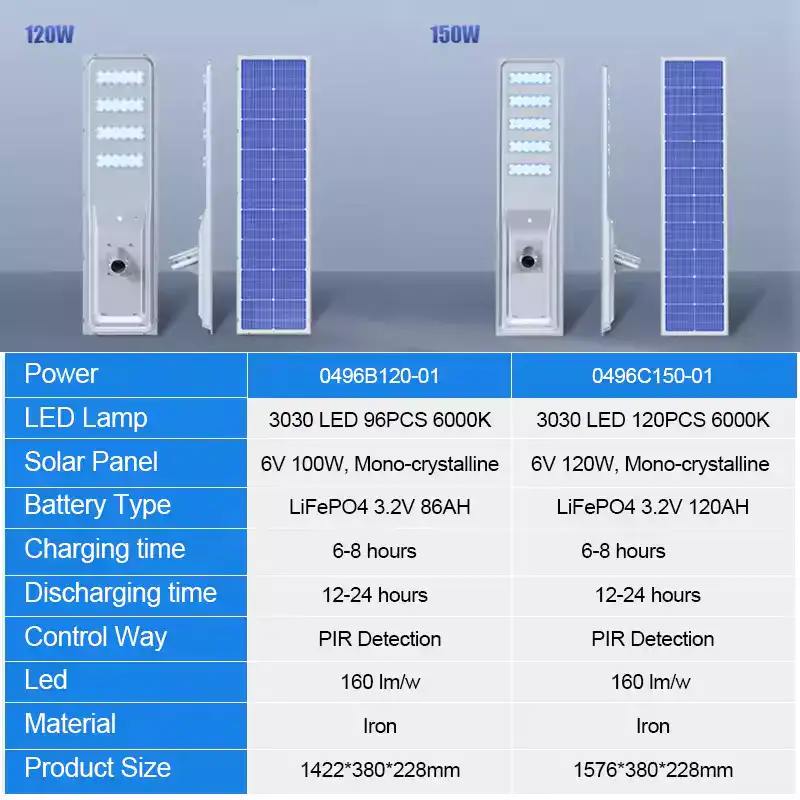 • LiFePO₄ (lithium iron phosphate) cells are now the leading choice for integrated solar street lamps because they deliver significantly longer cycle life, improved thermal stability, and better depth-of-discharge behavior compared with flooded or sealed lead-acid types. These benefits reduce replacement frequency and field maintenance costs.